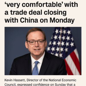 Kevin Hassett, Director of the National Economic Council, expressed confidence on Sunday that a trade deal between the United States and China would be finalized